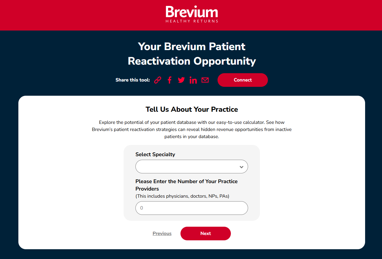 Brevium is the pioneer of patient reactivation, delivering a patented, data-driven platform that identifies and re-engages patients lost to follow-up. On average, 25% of a practice’s patient database is overdue for care, with no scheduled appointment or future outreach in place, leaving untapped value in both patient outcomes and practice growth.